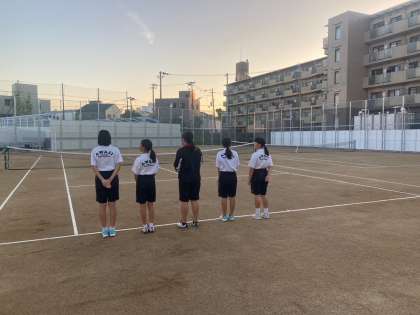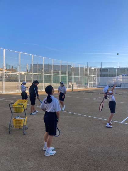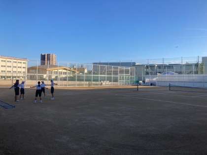 現在テニス部は、部員の数は他部に比べて決して多い方ではないですが、毎日元気な声を出しながら、新しいコートで楽しく練習にがんばっています。