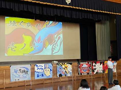 その後、配られた投票用紙に記入しベスト学級旗が選ばれ、体育大会当日体育大会実行委員より、発表されて、校長先生より表彰されました。