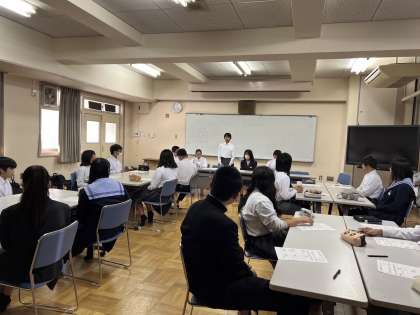 今月の生徒議会は後期に入り初めての議会で、新しいメンバーでのスタートになりました。初めは全員の自己紹介からはじまり、学年、委員会の目標と決めた理由をそれぞれ発表し合いました。