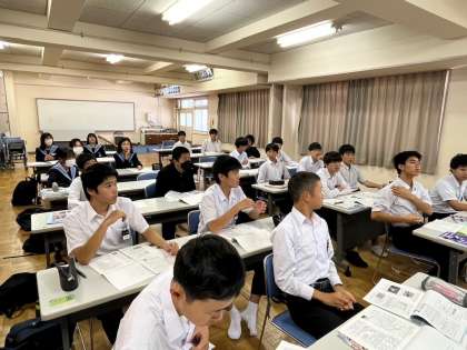 初日の火曜日は、私立大阪高校を招いて入試対策学習会を開催しました。
