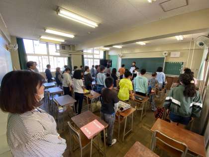 9日はお隣の西淡路小学校6年生の中学校登校日です。