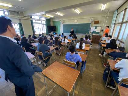 登校日と言っても、午後の5時間目と6時間目を淡路中学校の教室で学習する取り組みです。