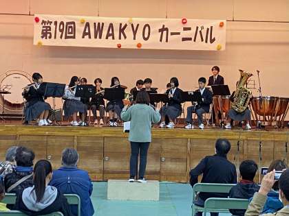 体育館では本校からも吹奏楽部と部落研が太鼓集団烈火とのコラボ演奏で出演しました。