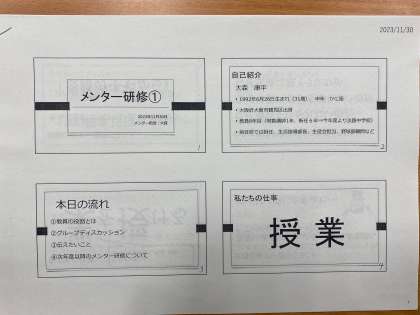 昨日は期末テストの2日目が終わってから、本校メンター担当の大森先生による、若手教職員対象の第二回メンター研修が行われました。
