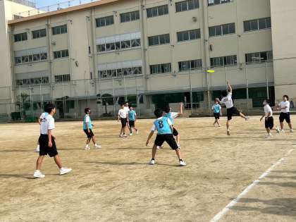 今回は、体育でも行ってる「アルティメット」を行いました。