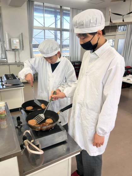 ハンバーガーはジューシーにドーナツはサクサクふわふわでどの生徒も楽しく食事、調理する様子が見られました。