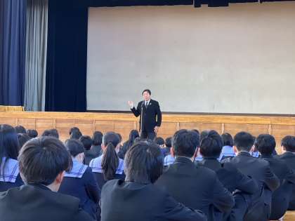 淡路中学校生徒して、礼儀正しく、挨拶がしっかりできる淡路中学生を地域の方に見せてきて下さい!と話されました。