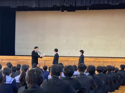 表彰状の伝達式では、野球部からブロックの選抜選手に選ばれた2名の個人の表彰が行われました。おめでとうございます。