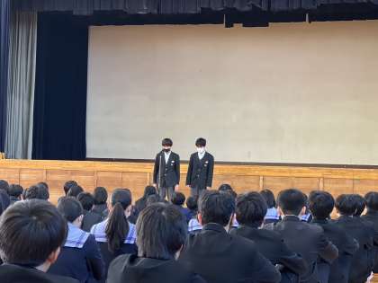 最後に部活動部長会議で決まった今月の部活動目標が部長代表から発表されました。