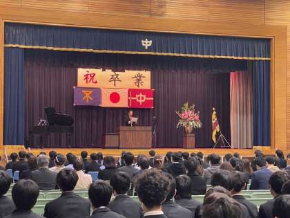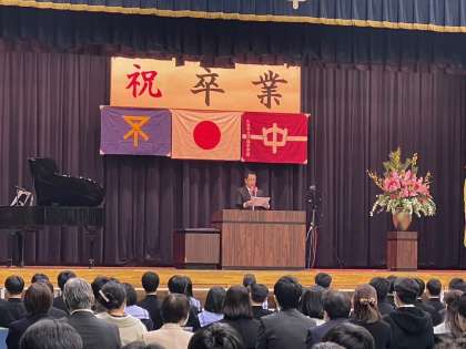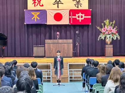 証書授与が終わり、学校長の式辞、PTA会長からの祝辞の後、在校生を代表して生徒会長から、お世話になった先輩へ心のこもったの送る言葉がありました。