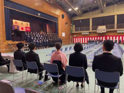 在校生の送る言葉の後、卒業生の答辞がありいよいよ卒業生の旅立ちの歌です。