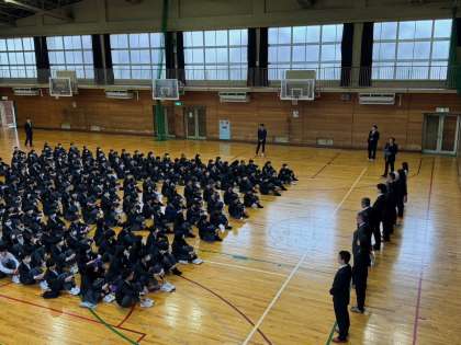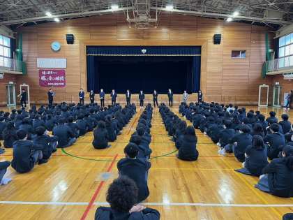 10名の新しい教職員の方を全校生徒の前で紹介させていただきました。