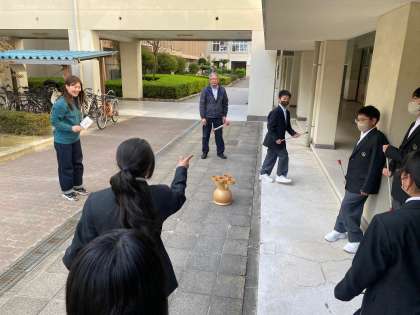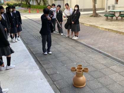 今日は天気も良いので、部屋を出て屋外で韓国・朝鮮の遊びの一つ「トゥホ」をしました。