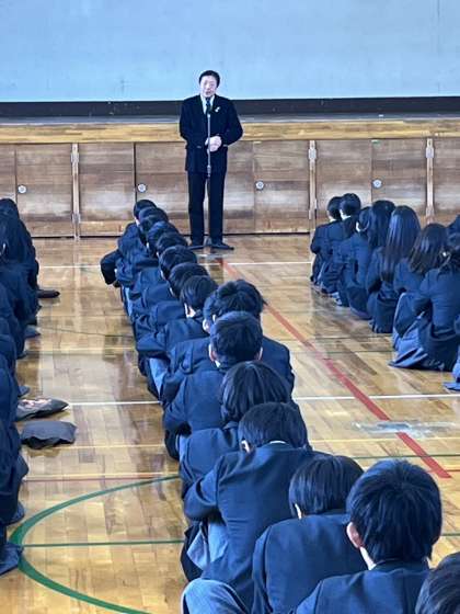 学校長より生徒会立会演説会に向けての話と、熱中症予防の話がありました。