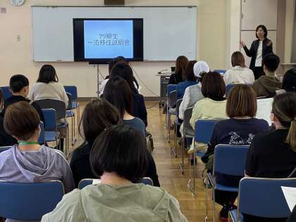 GW開け、5月17・18日の金土にかけて、大阪市立信太山野外活動センターで行われる1年生の一泊移住について、授業参観の後、1年生保護者対象に第一会議室で行われました。