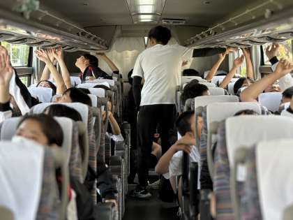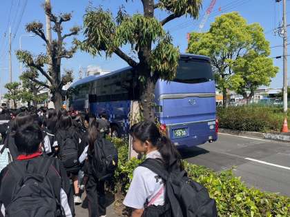 出発式が終わり、バスに乗り込みいよいよ出発です。