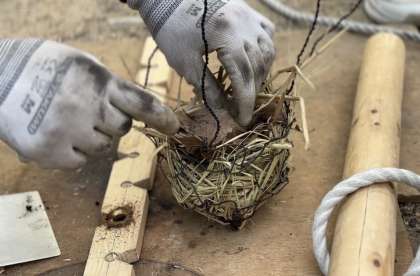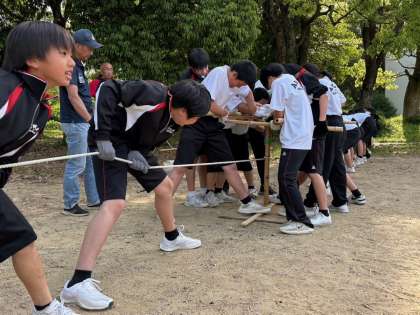 避難経路の確認、破損箇所調査、シーツの調達を終えたら、再び野外広場に集合!