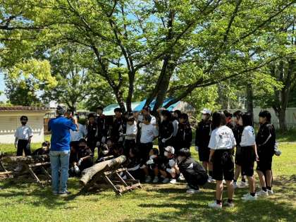 9時には広場で今日の活動1、薪割り体験です。