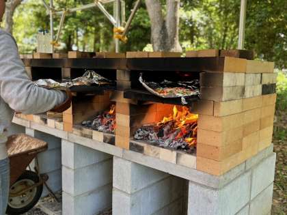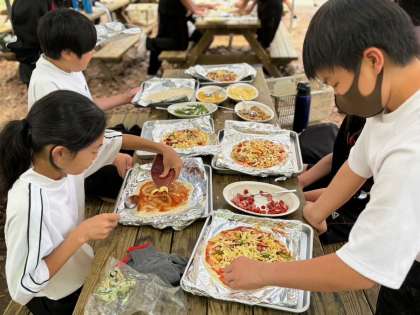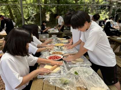 最後にシュレッドチーズで仕上げたら、班毎にピザ窯へ。
