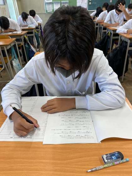 土曜日の日本英語検定に続いて、月曜日は3年生が今年度第1回目の実力テストを受験しました。