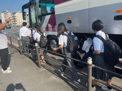 バスへ荷物を積み込み、沢山の保護者、先生方のお見送りを受けて、77期生の修学旅行いよいよ出発です。