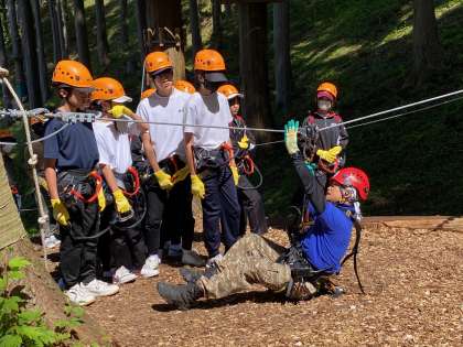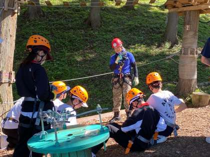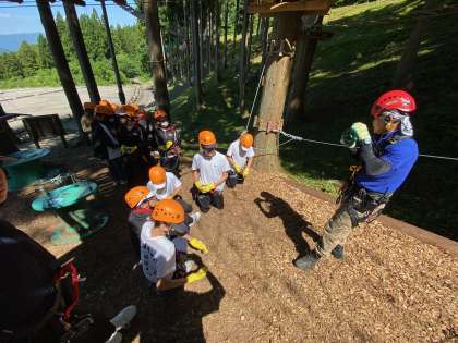 初級コース、中級コース、上級コース、ジップコースに別れる前に、命綱とプーリーの使い方の講習を受けました。