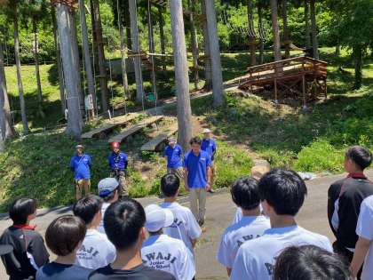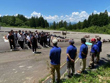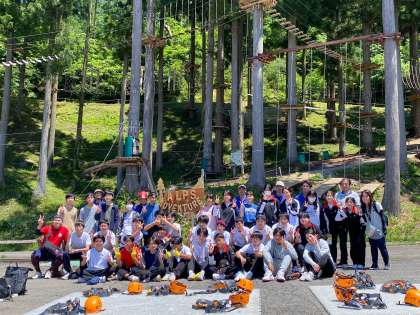 楽しかったアドベンチャーも事故も無く無事終了し、最後にお世話になったインストラクターの皆さんにお礼を言って、記念写真を撮り、バスで鷲ヶ岳を後に一路昼食を摂りにホテル郡上八幡へ。