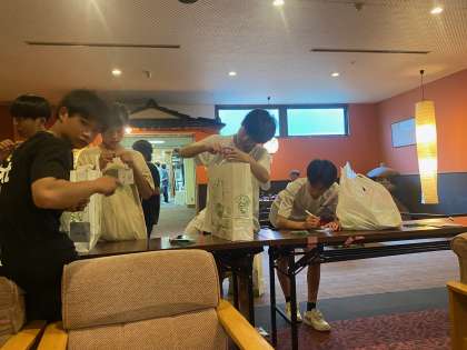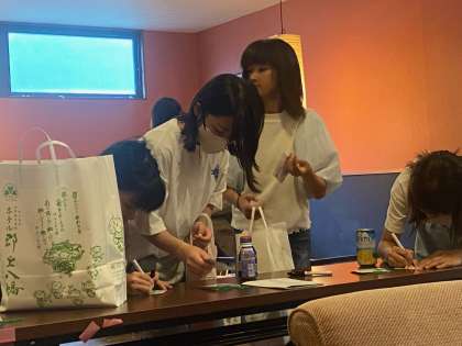 お土産を買ったら、それぞれが間違わないように、ネームプレートを付けて帰ります。