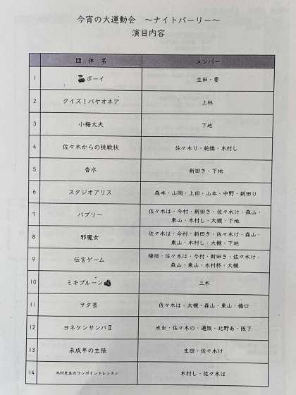 題して、『今宵の大運動会 ナイトパーリー』の開幕です。