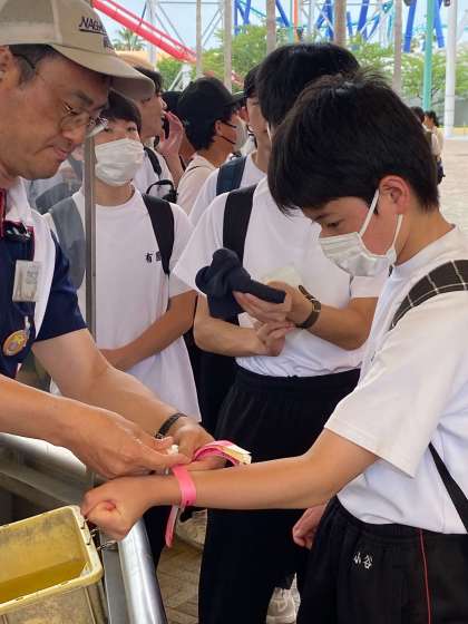 入場門で入場引換券を渡し、入場パスポートを腕に巻いてもらい、いよいよスタート!