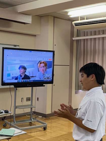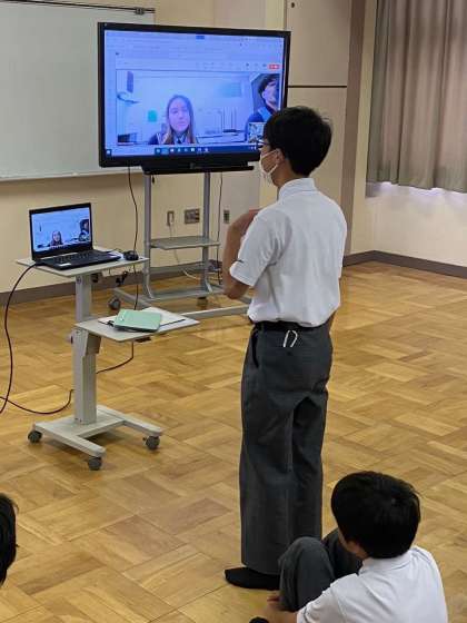 オーストラリアタスマニアの高校生は淡路中生からの英語のプレゼンに日本語で質問をしたり、また、自分たちの住むタスマニアでの学校生活や街の様子などを、プレゼンしてくれました。