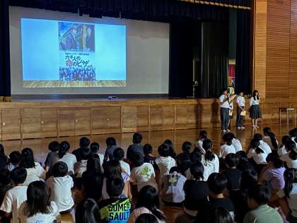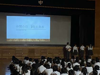修学旅行に向けて取り組んできた人権学習をふまえ、修学旅行でおとづれた岐阜県での杉原千畝記念館フィールドワークの報告がありました。