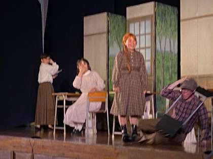 皆さんご存知の『赤毛のアン』は今の子ども達の読書離れも手伝って、読んだ事のある生徒はほんの一握りでしたが、劇団員のスキルの高さも手伝って生徒たちはグイグイ引き込まれ、誰ひとり私語や居眠りも無く真剣に見入っていました。