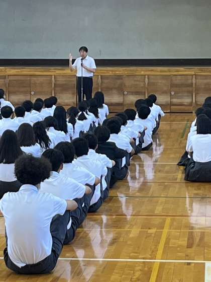 今日も暑いですが、しっかり学び、自分のため、大切な人のためにみんなと協力し合い有意義な日を過ごしましょう!と呼びかけられました。