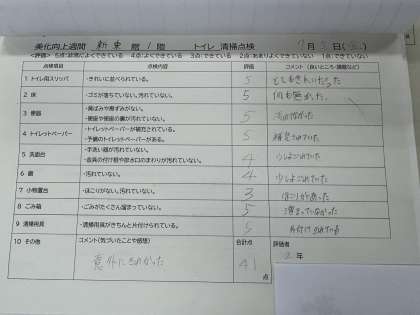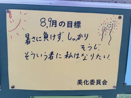 美化委員会では、8・9月の目標を決めたあと、美化向上週間や破損調査について話し合いました。