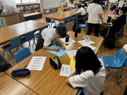 文化委員会は、8・9月の目標を決定し、夏休み中に行う図書室の蔵書点検について図書館司書さんから説明がありました。