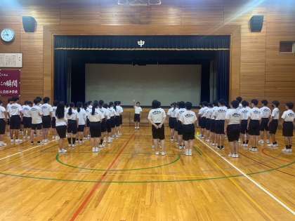 「FIFA アンセム」の音楽にのせて選手入場し、体育委員主導で開会式を行いました。