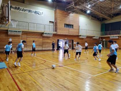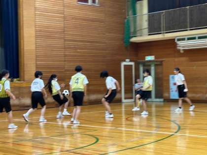 種目は「サッカー」。当初は、グラウンドで行う予定でしたが、朝から気温が高かったこともあり、急遽、体育館での実施になりました。