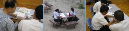 学校では、放課後30分の自主学習タイム、1時間半のドリスタなど、家庭学習につながることを期待し、様々な取組をしています。そのような中、放課後に教室や中庭で勉強している姿がありました。