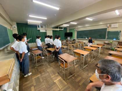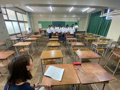 6時間目、3年生が体育館で文化発表会の合唱コンクール舞台練習の間、2年生は男女に分かれて教室でパート練習です。