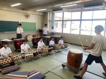 画像は部落研、文化発表会に向けて、太鼓演奏にいっそう気合を入れてがんばっています。