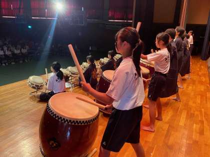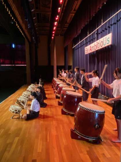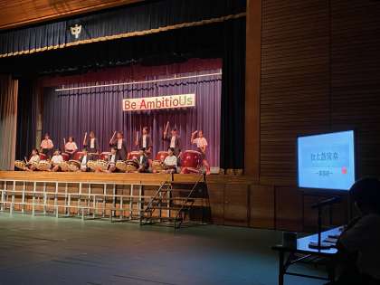 開会セレモニーの後、舞台発表プログラムの1番は部落研による『和太鼓演奏』です。