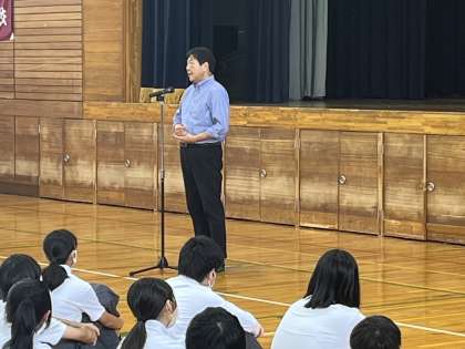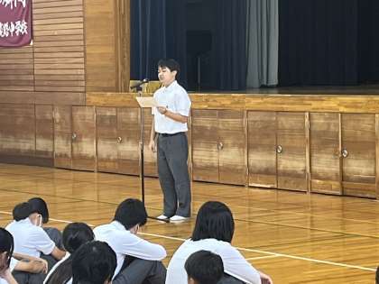 そして生徒専門委員会から今月の目標の発表があり、後期生徒会選挙についての説明がありました。