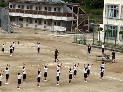 25日に体育大会を控え、体育の時間に学年練習が始まっています。