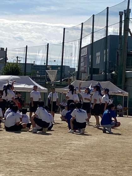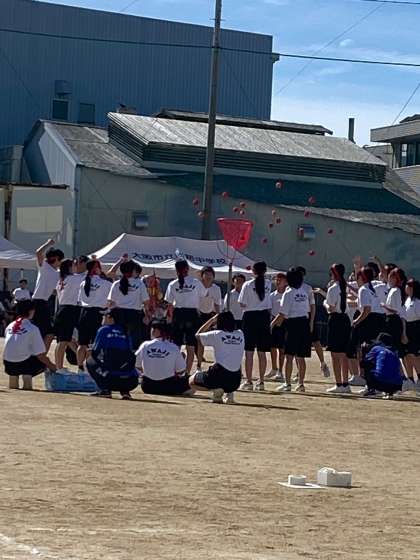 トライアスロンに続いて、プログラム4番は、1・2・3年生男女による『一球入魂』、いわゆる玉入れですが、普通の玉入れと違い、生徒個々が投げ入れることができるのは一球だけ。