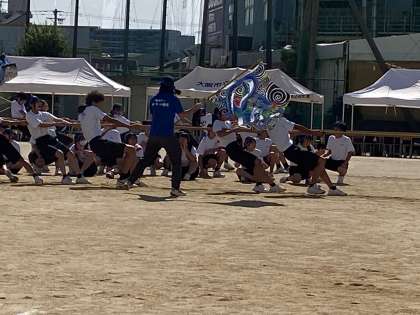 生徒達の熱気もさることながら、担任の意地をかけて、応援旗を振る様は、殺気に満ちていました。