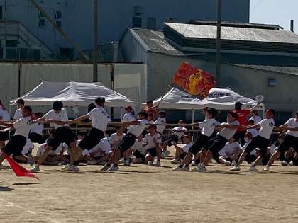 1学年から3学年まで、1組、2組それぞれ青団・赤団対決です。
