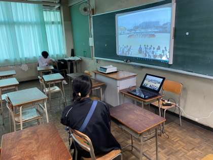 画像の最後は、懇談控え室のシーンです。体育大会学年演技の模様が映写されています。