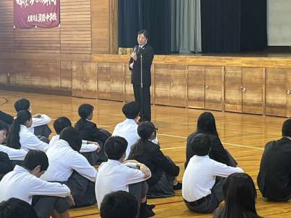 昨日、体育館で全校集会が行われました。