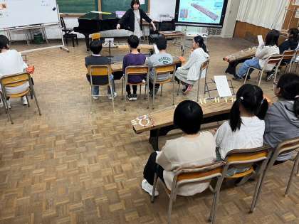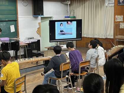 あるクラスの音楽の授業では、普段実際に触る事ができないお箏の学習をしました。